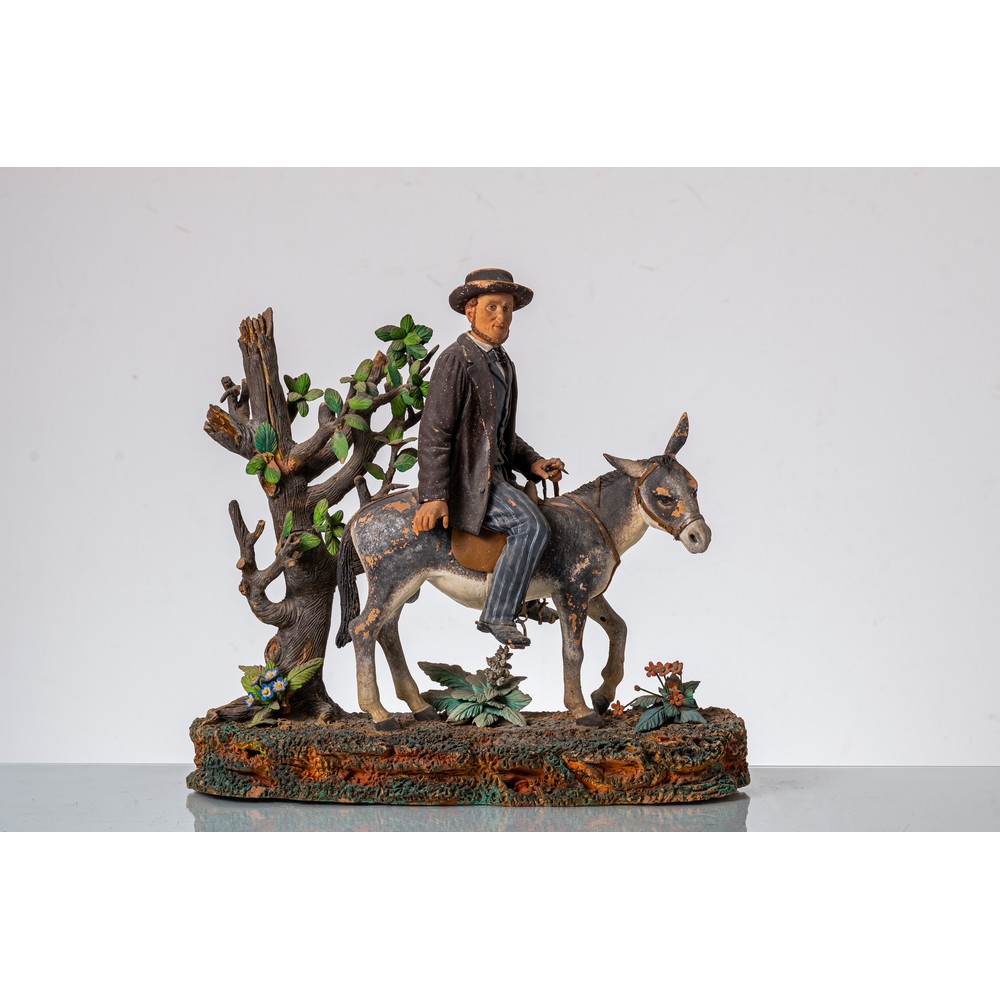 Gruppo in terracotta raffigurante "Viandante europeo in Sicilia" (usure).
