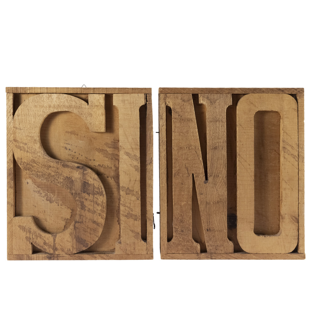 Mario Ceroli (Castel Frentano 1938) "Si/No" 1972 27x32x12 cm.