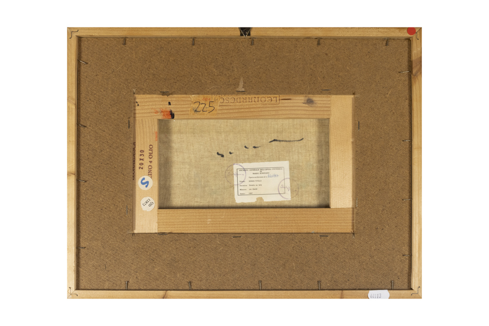 Etichetta e timbri dell'Archivio Generale dell'opera pittorica di Mario Schifano sul retro.