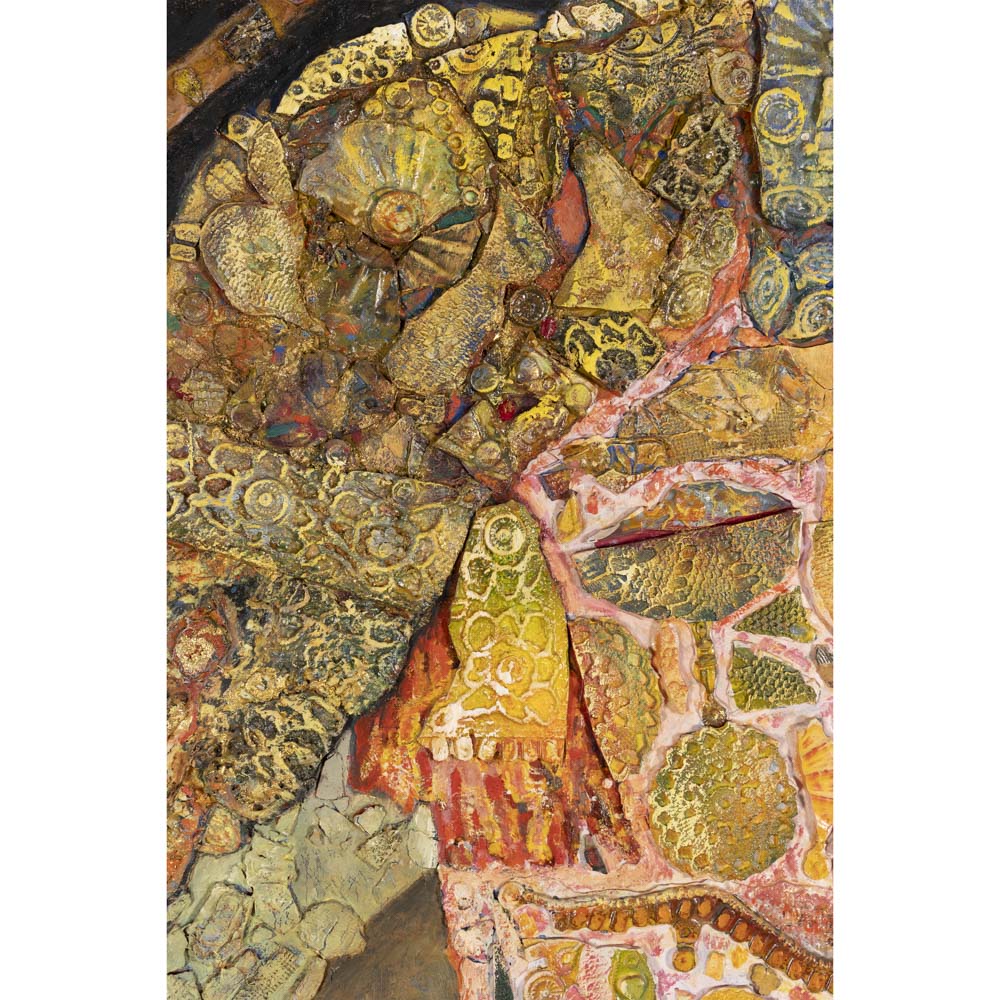 materia e foglia d'oro ossidata, firmata e datata in basso a destra