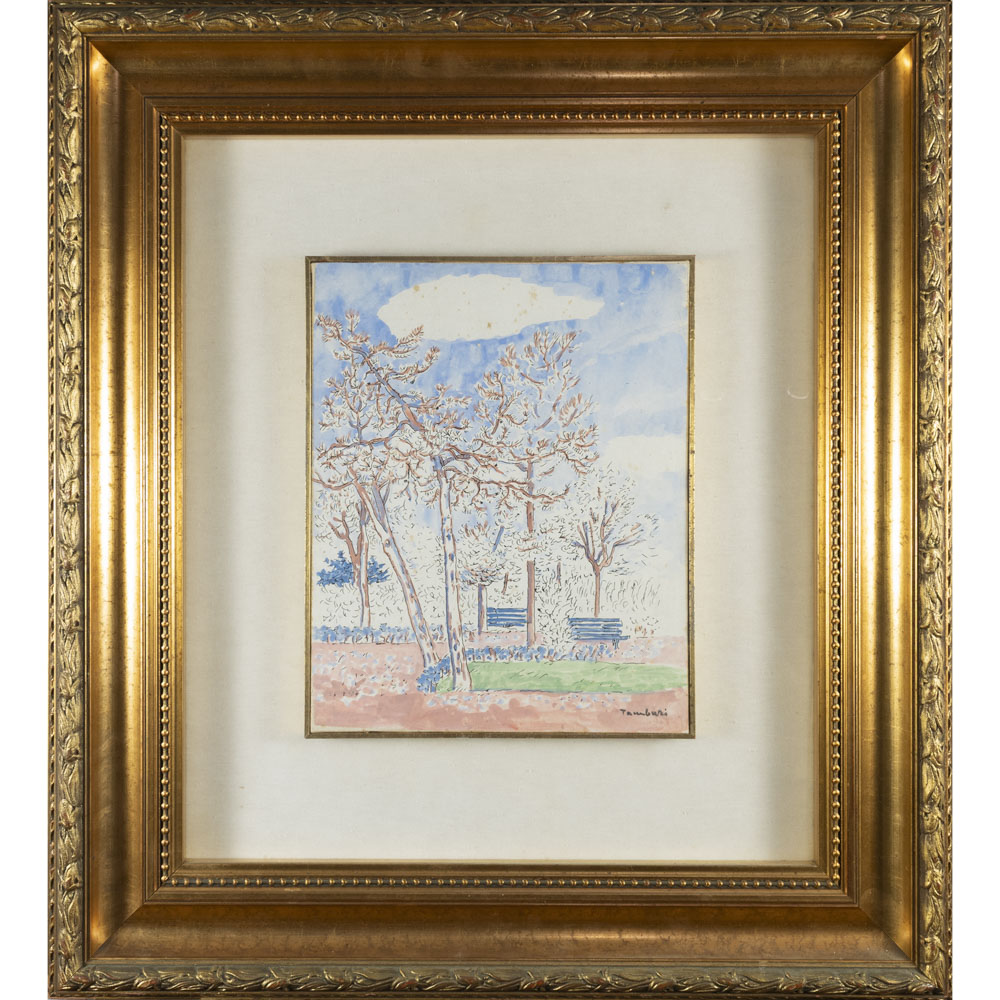 Orfeo Tamburi (Jesi 1910 - Parigi 1994) "Parco parigino" 35x28,5 cm.