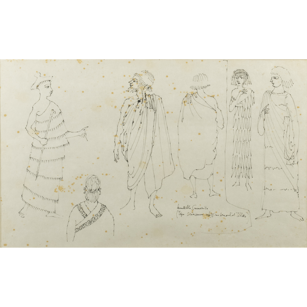 Corrado Cagli (Ancona 1910 - Roma 1976) "Studi per Semiramide - Mantello sumerico" 1962 31,5x51 cm.