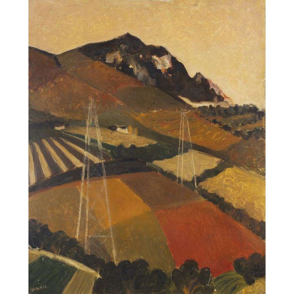 Carlo Quaglia (Terni 1903 - Roma 1970) "Paesaggio con tralicci" anni '60 88,5x70 cm.