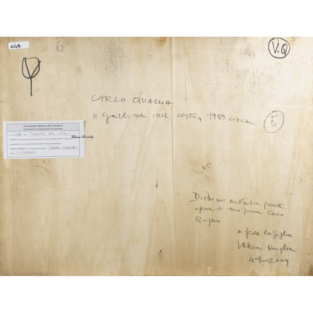 Lotto 122 | Carlo Quaglia (Terni 1903 - Roma 1970) "Galline nel cesto" 1955 ca. 45x60 cm.