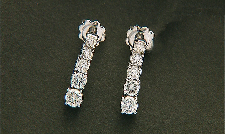 COPPIA DI ORECCHINI. In oro bianco 18 kt, perno e farfalla, settori verticali incernierati in diamanti taglio brillante disposti in gradazione dal basso per tot. cts. 1,80 ca.