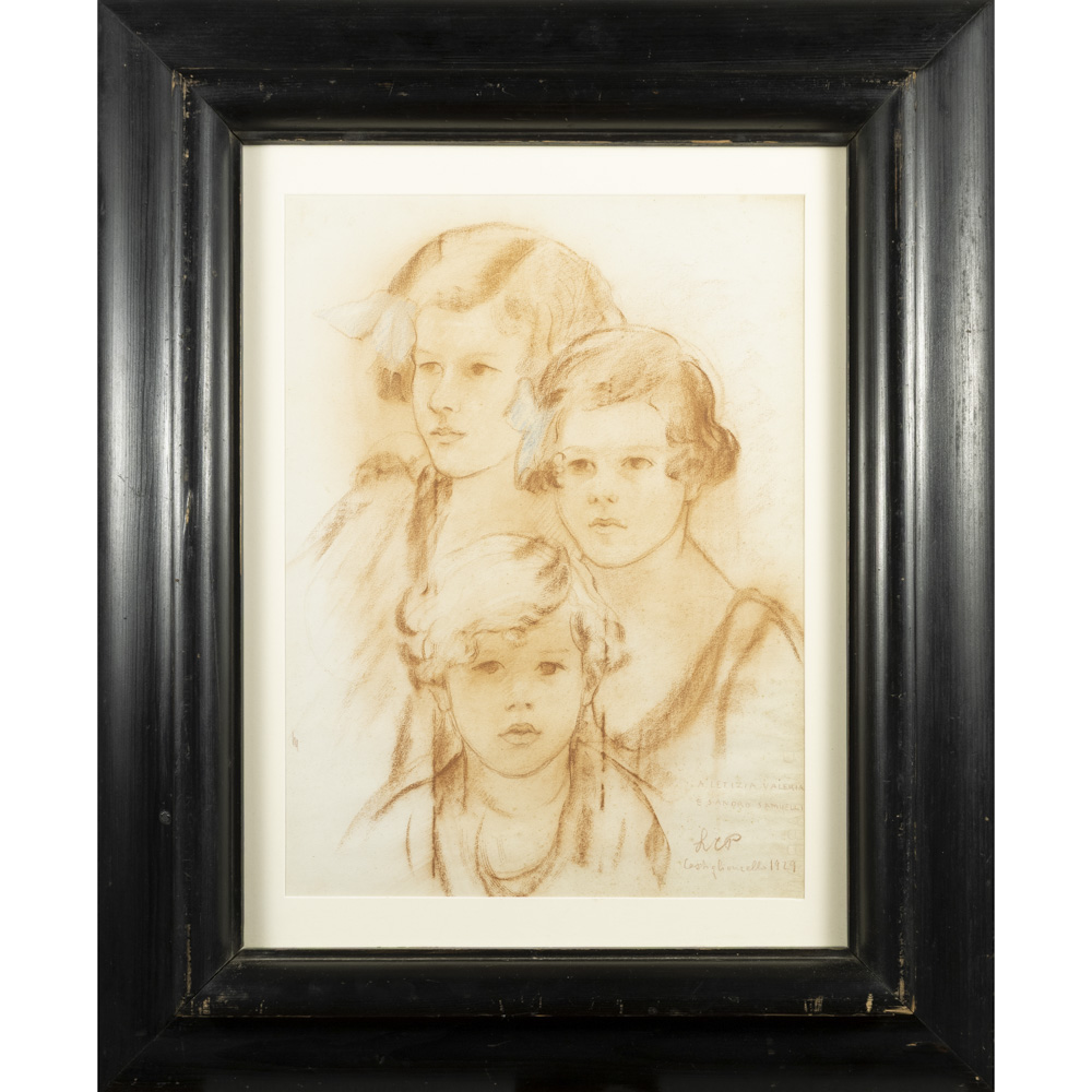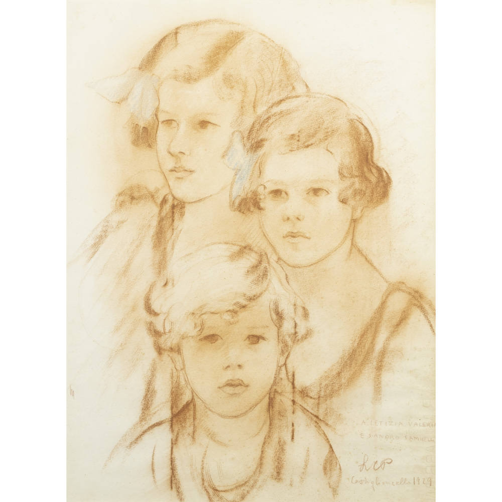 Lotto 142 | Leonetta Cecchi Pieraccini (Poggibonsi 1882 - Roma 1977) "Ritratti di Letizia, Valeria e Sandro Samuelli" 1929 45x33 cm.