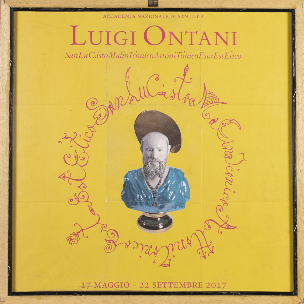 stampa a colori con intervento dell'Artista della mostra "Luigi Ontani " presso l'Accademia Nazionale di San Luca, Roma 2017, entro cornice