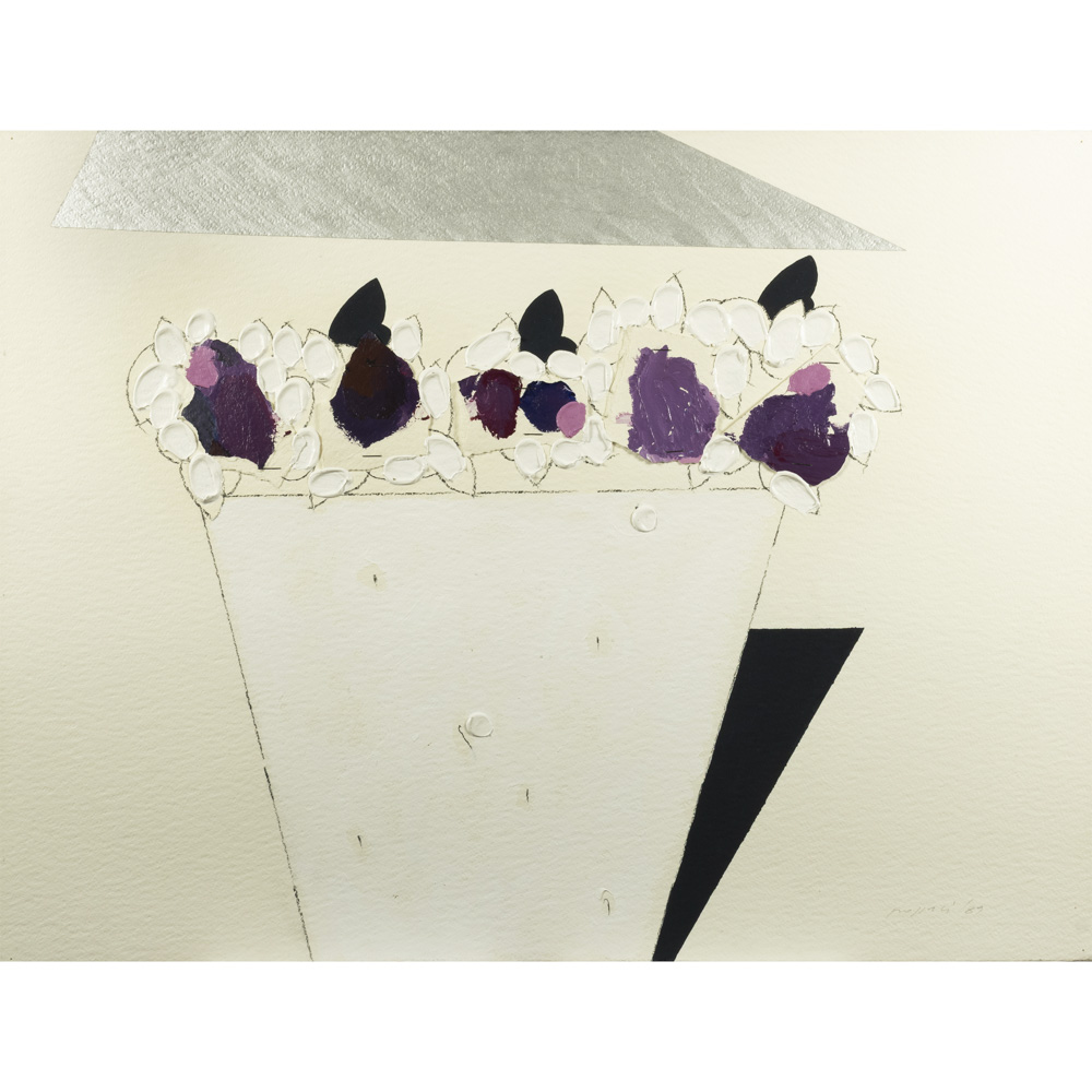 Concetto Pozzati (Vo' 1935 - Bologna 2017) "A che punto siamo con i fiori" 1990 56x76 cm.