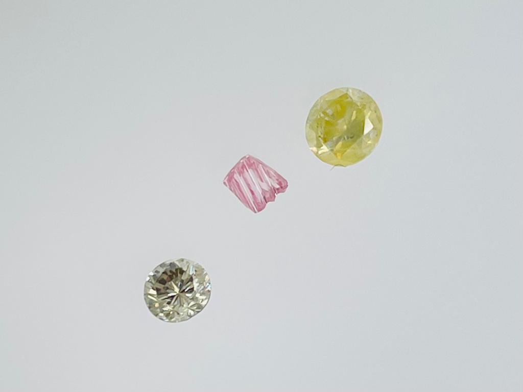 3 DIAMANTI NATURAL POLISHED 0,5 - COLORE NATURAL FANCY ROSA+GIALLO+MARRONE VERDE NTENSI - PUREZZA VS2-SI2 - CERTIFICATO - F20303-9 - COMMISSIONE D’ASTA 25%