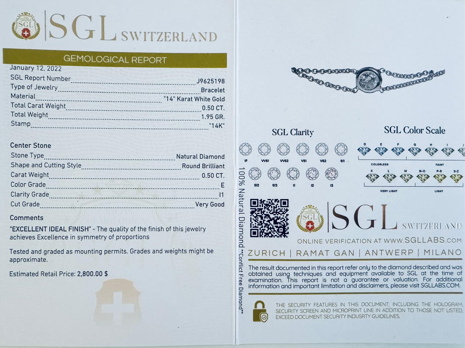 BRACCIALETTO IN ORO 14K CON DIAMANTI PER 0,50 CT COLORE E PUREZZA I1 18,5 CM - BRC20102 - COMMISSIONE D’ASTA 25%