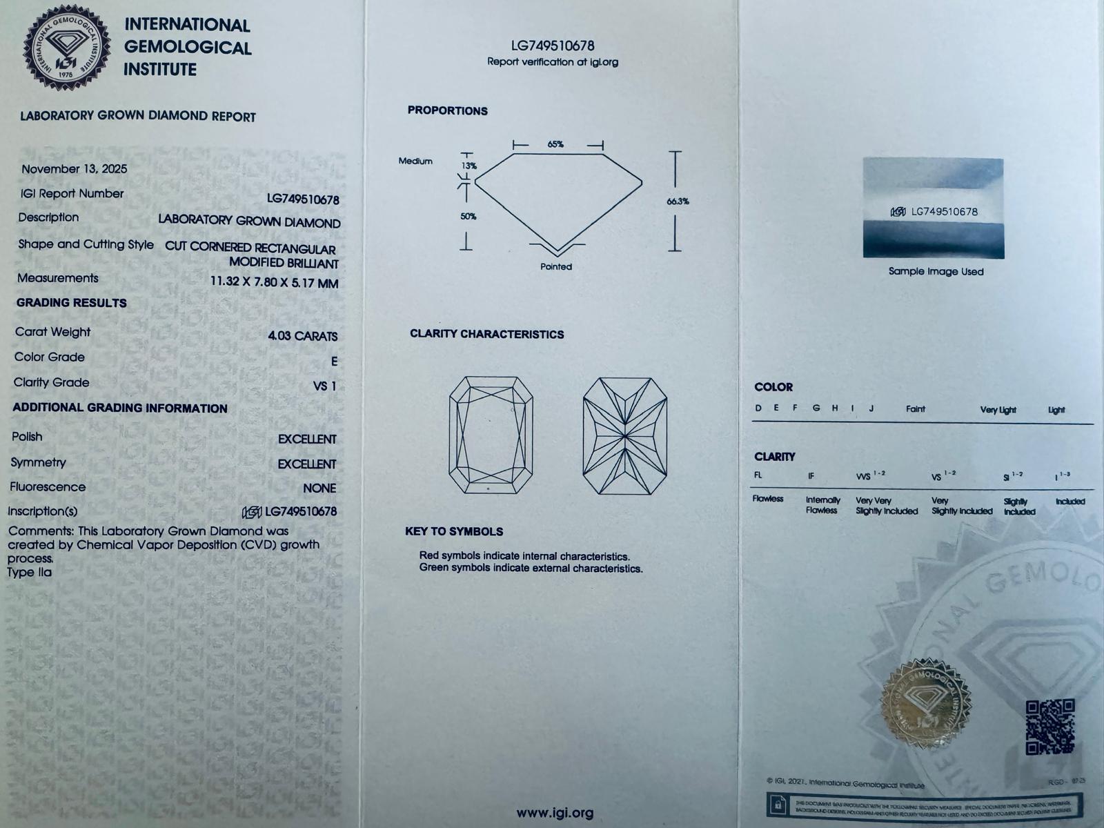 ANELLO IN ORO BIANCO 14K 3,58 GRAMMI CON DIAMANTI LAB-GROWN 4,03 CARATI COLORE E PUREZZA VS + 0,32 CT D-E/V-S - CERTIFICATO I.G.I. - LGRNG51201 - COMMISSIONE D’ASTA 25%