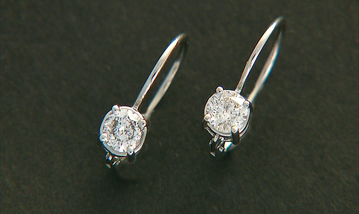 COPPIA DI ORECCHINI. In oro bianco 18 kt a monachella e clip con due diamanti taglio brillante per tot. cts. 0,80 ca. entro castone a quattro griffes.