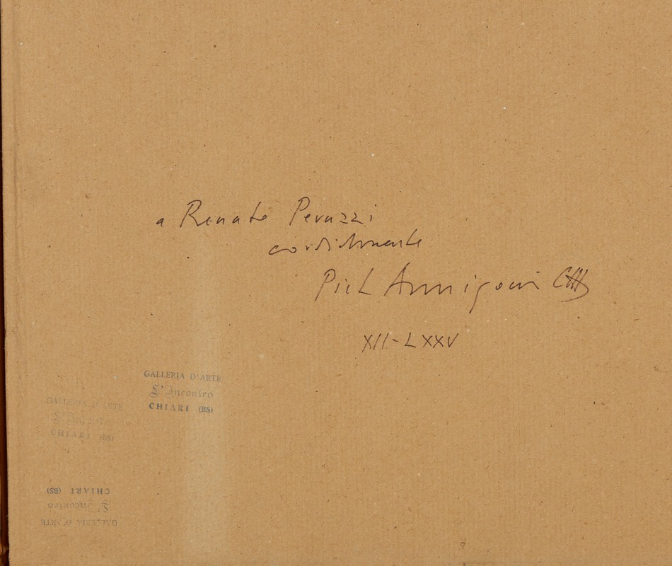 sul retro: firma, data, dedica ad personam e timbro di provenienza Galleria d'Arte l'Incontro, Chiari (BS)