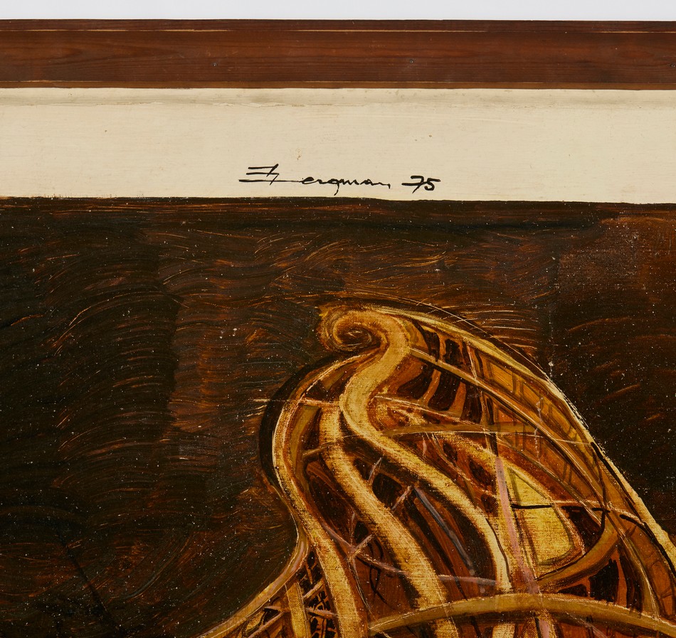 AUTORE NON IDENTIFICATO SENZA TITOLO. 1975. Olio su tela. Cm 118,00 x 210,00. firma e data