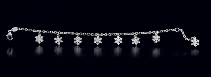 BRACCIALE. In oro bianco 18 kt maglie ad anelli con settori oscillanti a fiocco di neve in diamanti taglio brillante per tot. cts. 1,50 ca.