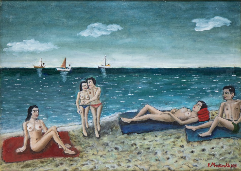 MARTINELLI PIERO LA BATTIGIA. 1975. Olio su tela. Cm 70,00 x 50,00. firma e data