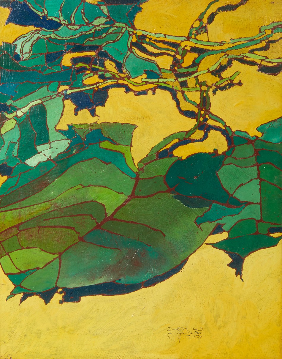 VILLANI ENRICO (1928 - 2016) FOGLIE . 1970. Olio su tela. Cm 40,00 x 50,00. firma e data