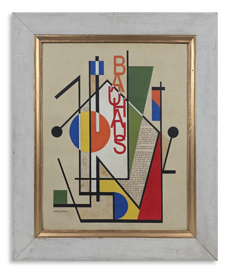 GUNTHER OTTO (1856 - 1941) COMPOSIZIONE GEOMETRICA. Olio e collage su tavola. Cm 38,00 x 47,50. firma . Cornice presente