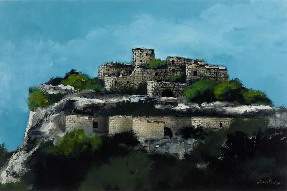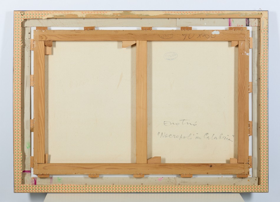 PUGLIESE ENOTRIO (1920 - 1989) NECROPOLI IN CALABRIA . Olio su tela. Cm 90,00 x 60,00. firma