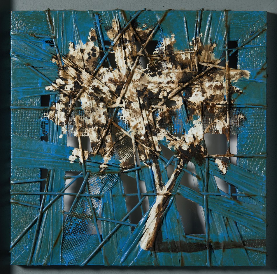 FRANCINO (RIZZI FRANCESCO) (n. 1971) SENZA TITOLO. 2017. Tecnica mista su tela. Cm 45,00 x 45,00. L'opera è accompagnata da autentica dell'artista. Cornice presente