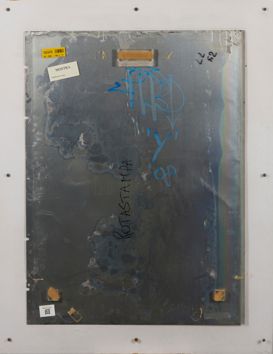VERBO (BOMBARDIERI MITJA) Y. spray e acrilico su carta tipografica. Cm 100,00 x 126,00. sul retro: firma e titolo