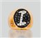 ANELLO. In oro bianco e rosa 18 kt sommità ovale con motivi in diamanti neri taglio brillante per tot. cts. 0,25 ca. e diamanti incolore taglio brillante per tot. cts. 0,10 ca. a decorazione della lettera "I".