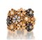 ANELLO. In oro bianco, brunito e rosè 18 kt parte superiore a maglia morbida con settori a fiore decorati da diamanti incolore e neri taglio brillante per tot. cts. 0,90 ca.