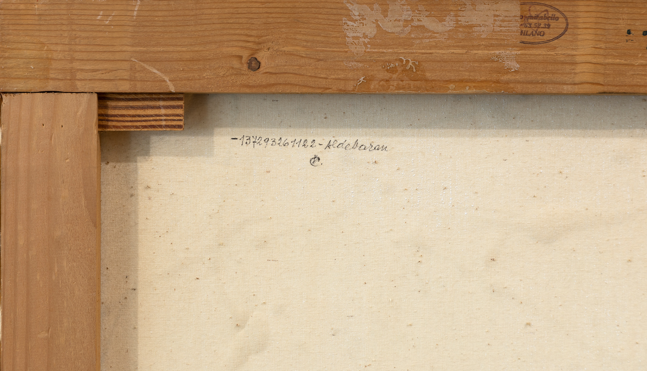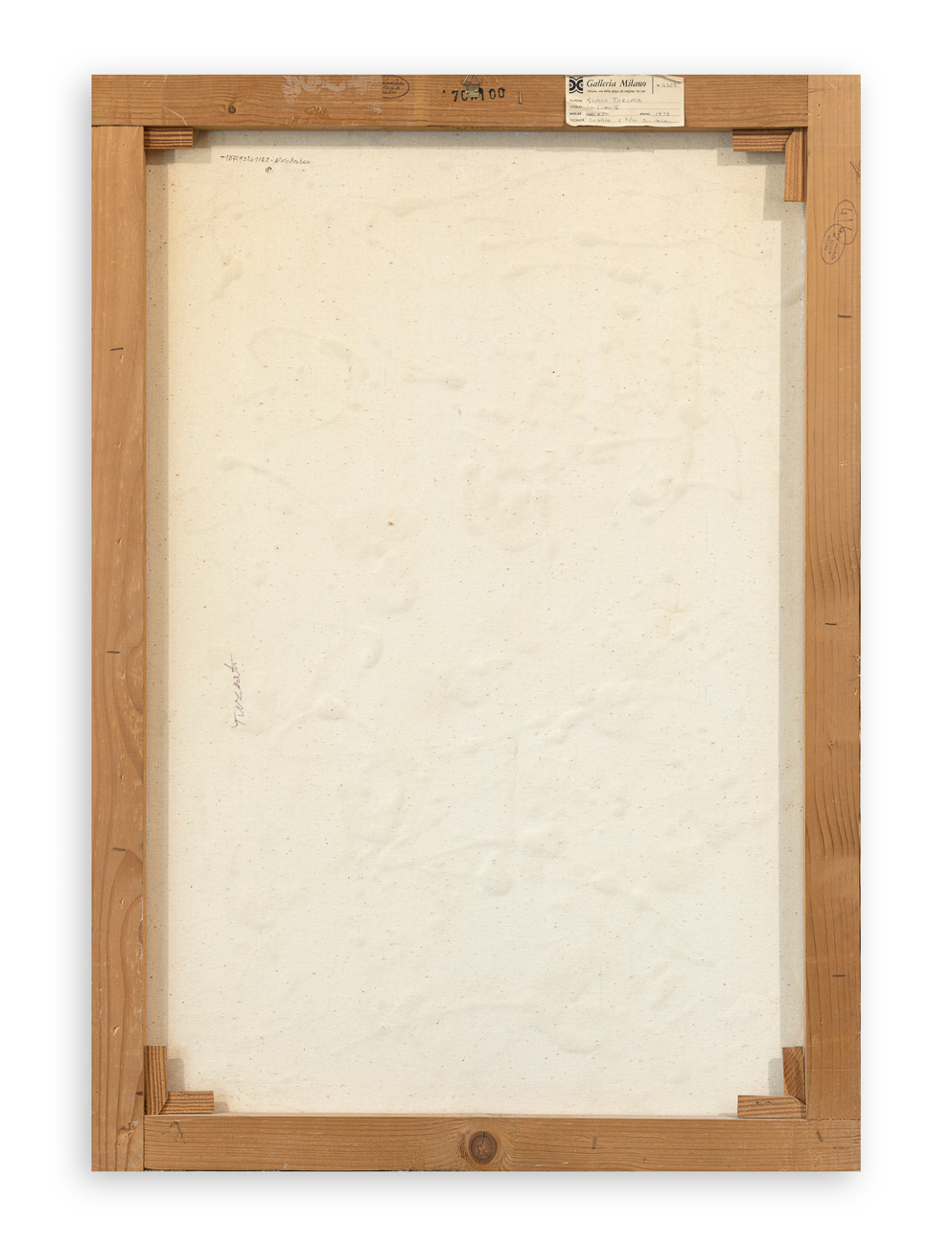 Etichetta della Galleria Milano (MI), con caratteristiche tecniche dell'opera, al retro