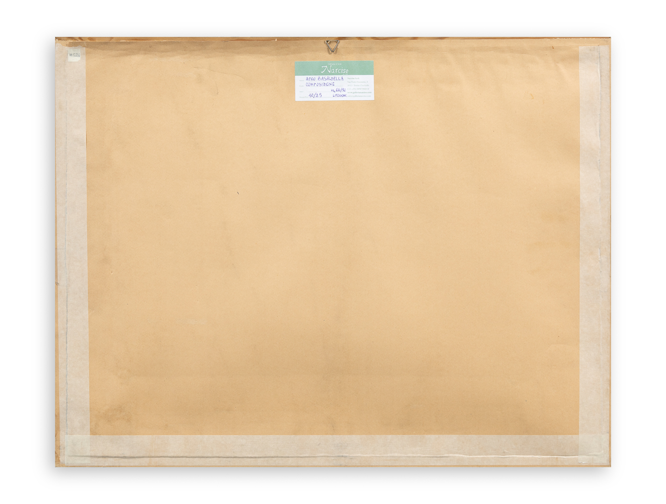 Etichetta della Galleria d'Arte Narciso (TO) al retro del cartoncino protettivo