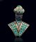 SPILLA-CIONDOLO ANNI '50 CA. In argento e oro bassa caratura a moretto con turchesi naturali taglio rotondo cabochon e diamanti taglio rosa, decoro a cesello e bulino, chiusura a doppio ago.