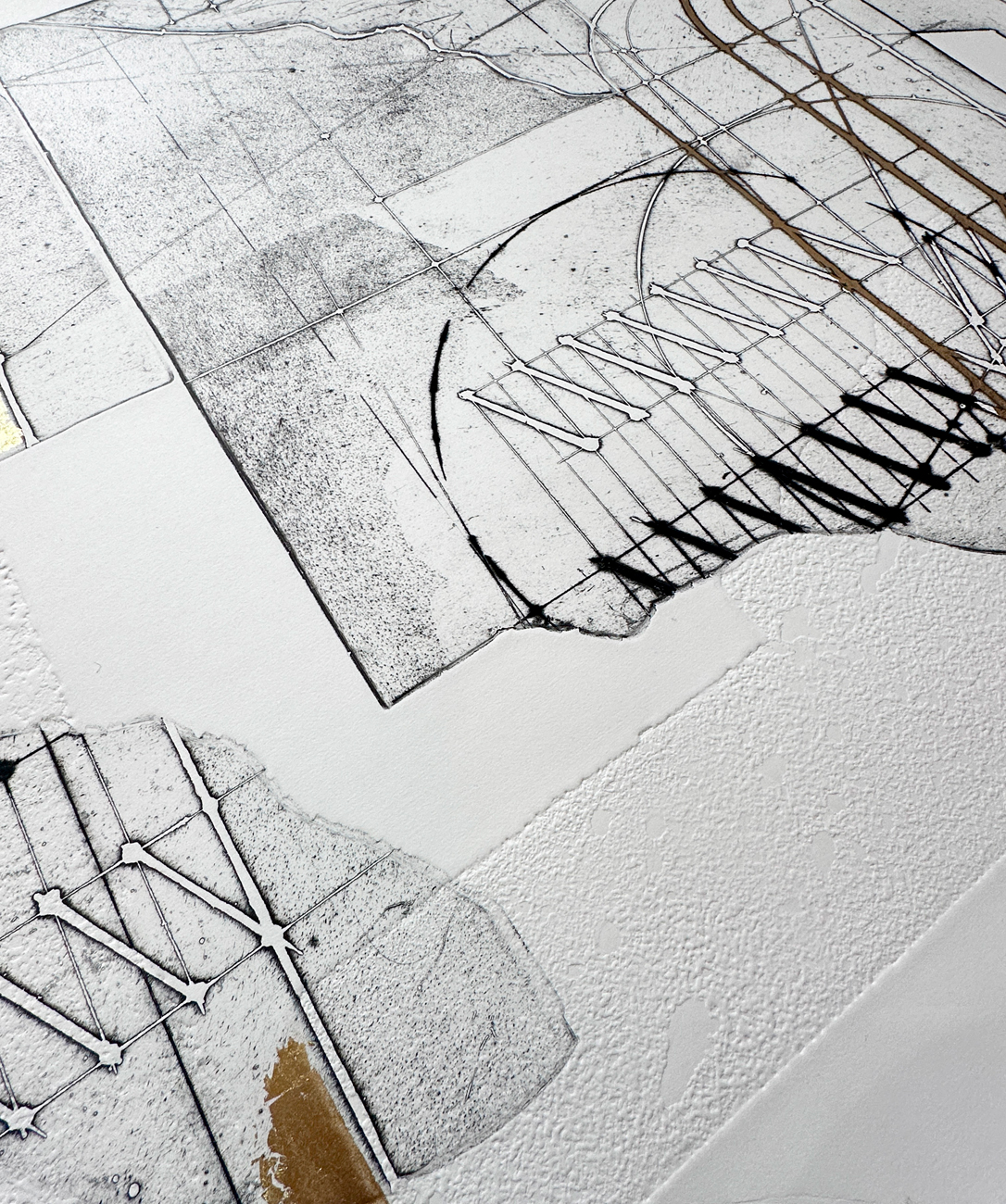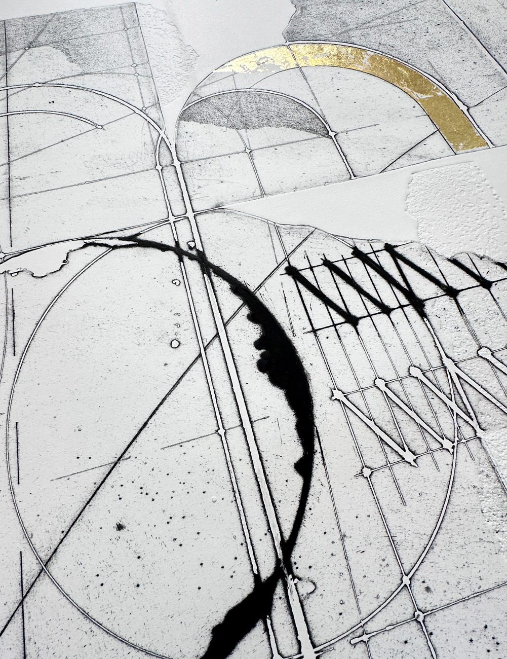 Acquaforte con intervento manuale a foglia oro su carta Magnani di Pescia