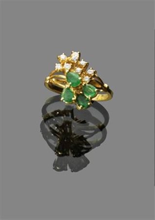 ANELLO Anello in oro giallo con smeraldi taglio a goccia e diamanti taglio...