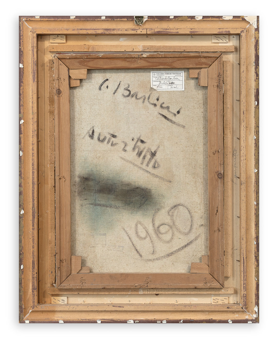 Etichetta e timbri della Galleria Ferrari (BG) al retro