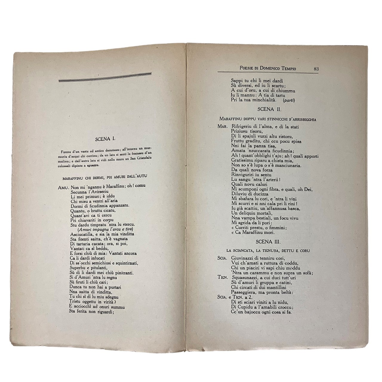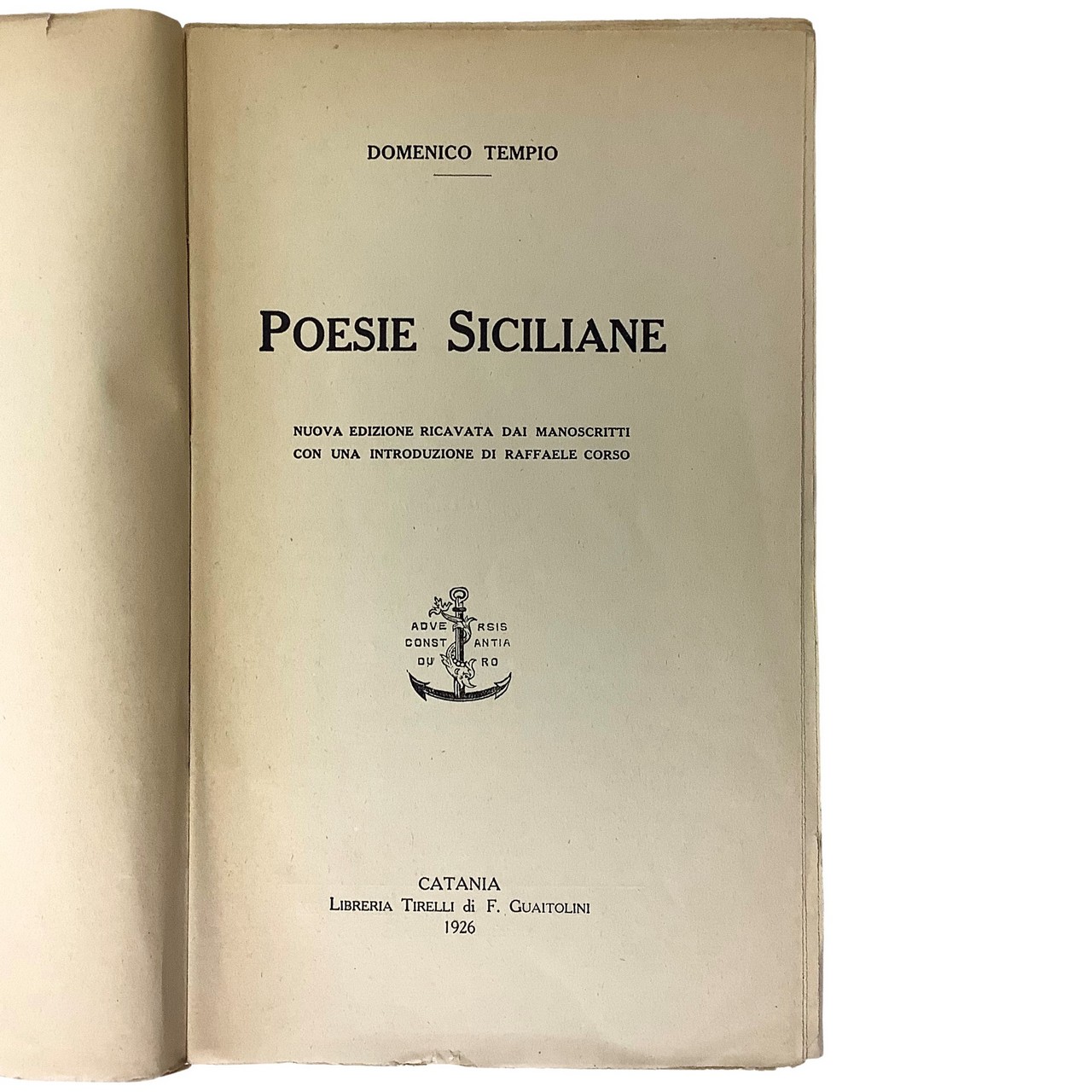 Domenico Tempio - Poesie siciliane, 1926 h cm 24x15 Nuova edizione ricavata dai manoscritti con una introduzione di Raffaele Corso. Catania Libreria Tirelli di F. Guaitolini 1926