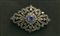 SPILLA INIZIO XX SECOLO. In oro bassa caratura ed argento realizzata a losanga con motivi floreali, al centro zaffiro sintetico taglio cuscino e decori in diamanti taglio rosa, chiusura ad ago semplice.