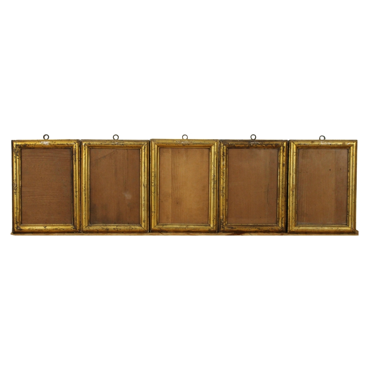 Lotto di cinque cornici Legno dorato. Sicilia. Secolo XIX. Cm 25x17 (misure interne)
