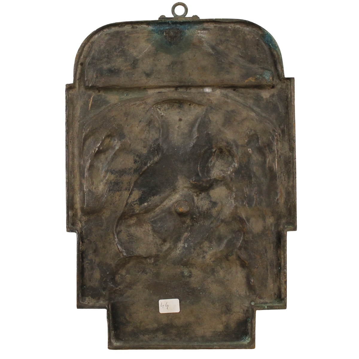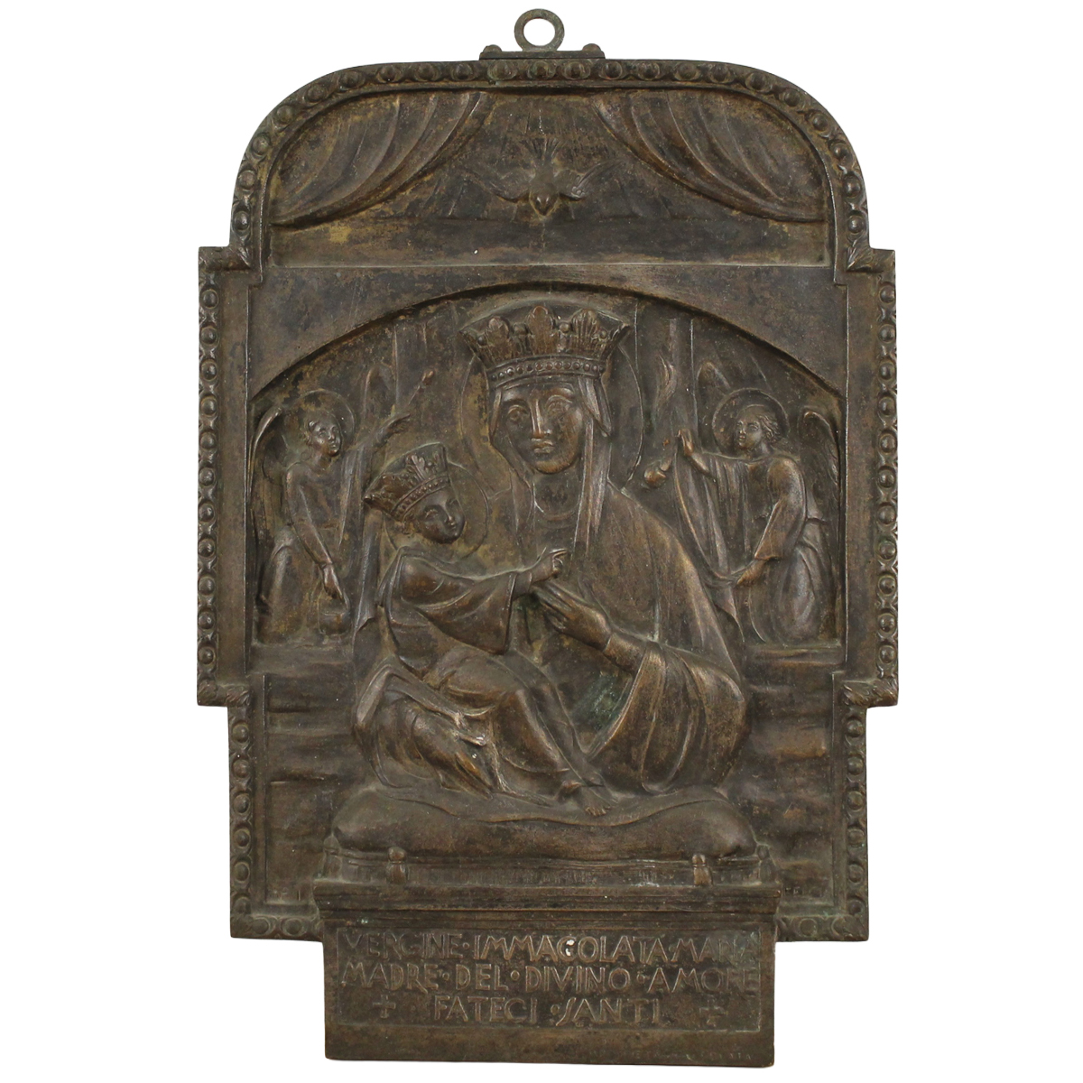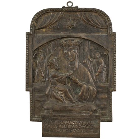 "Madonna con Bambino" Placca in bronzo inciso. Secolo XIX. Cm 34x24