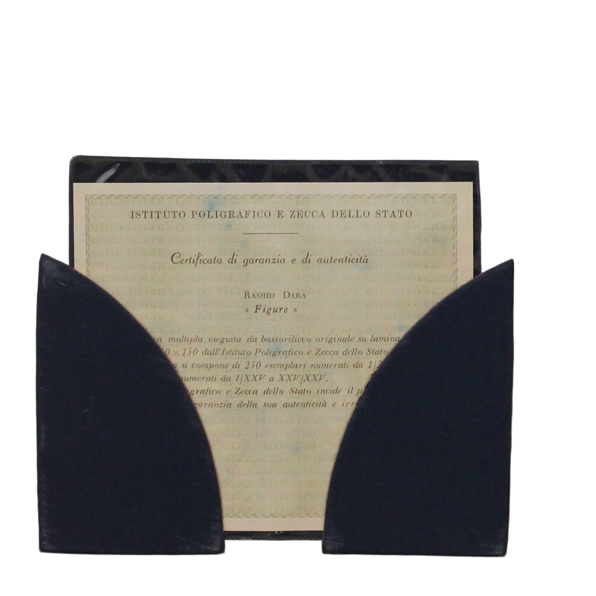 Rashid Dara (XX) "Figure" Bassorilievo su lamina d'argento 999/1000. Esemplare 143/250. Serie Zecca dello Stato. Certificato di autenticità della Società Italiana per le Edizioni d'Arte Cm 15x15