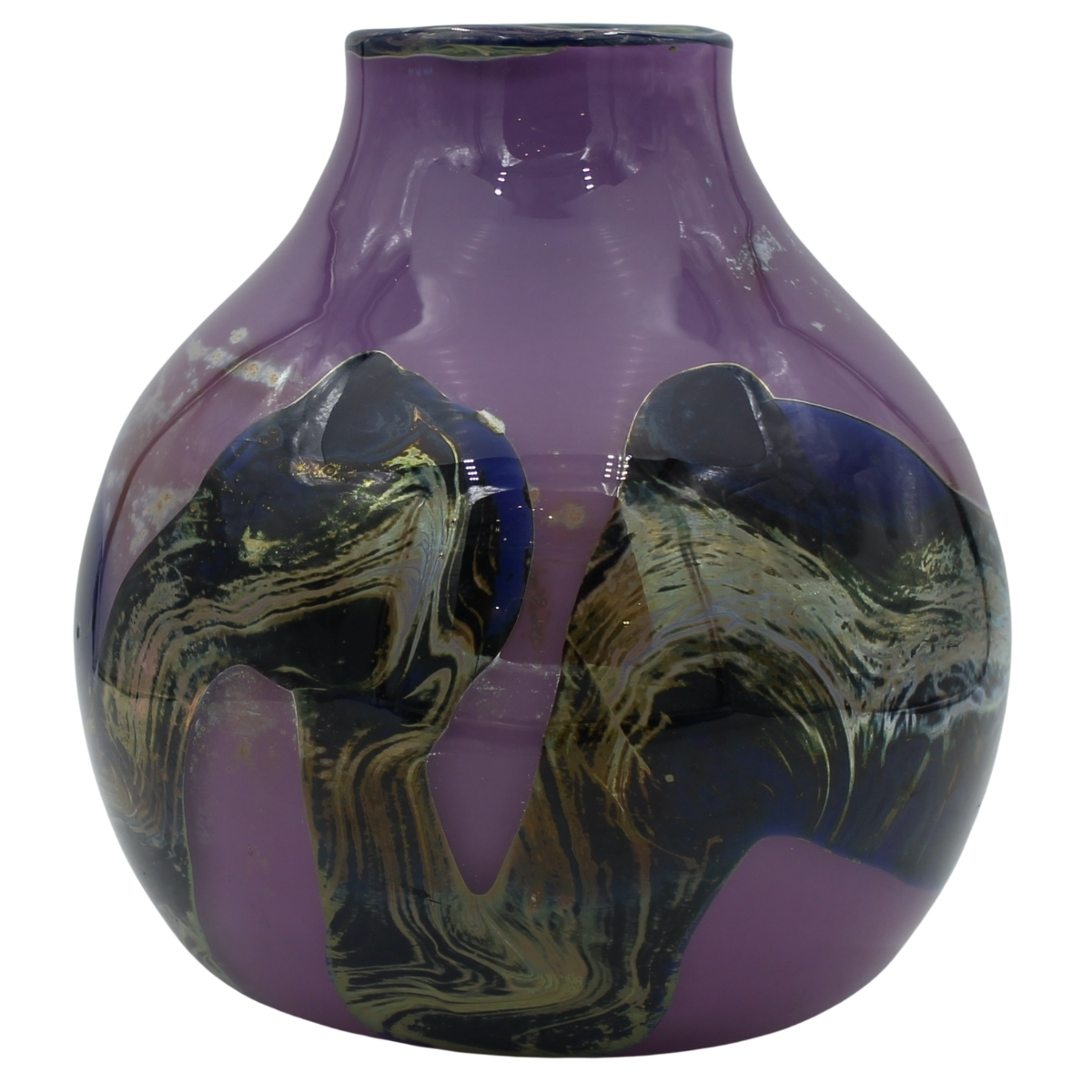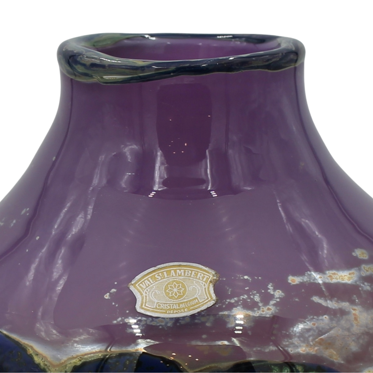 Vaso Cristallo policromo con decoro ornamentale (segni di usura). Marcato Vals'Lambert. Belgio. Cm h 31 d 27