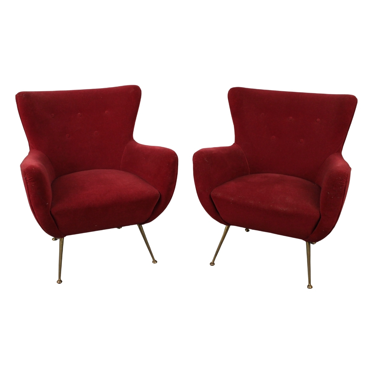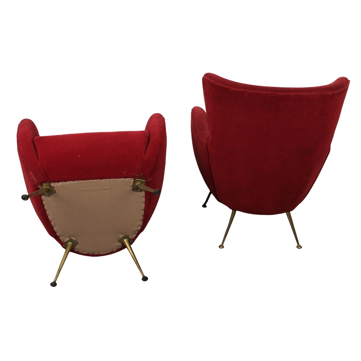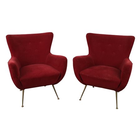 Coppia poltrone Stoffa e piedi in metallo dorato. Anni '50. Cm 73x65x88
