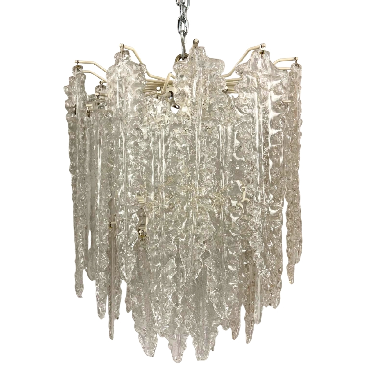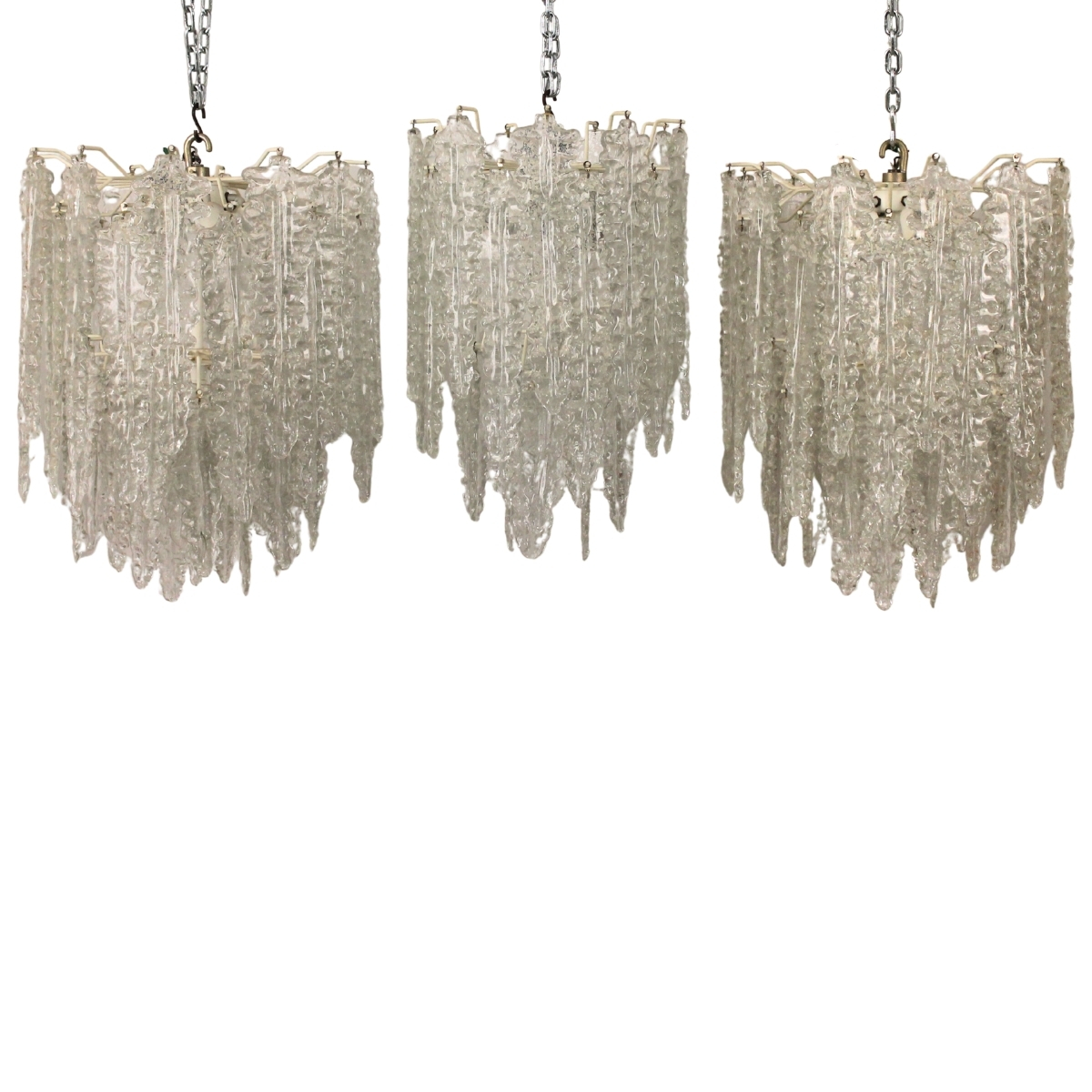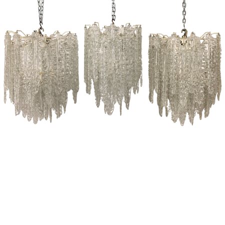 Tre lampadari Vetro di Murano. Probabile Venini. Anni '70. Cm 54x46; cm 56x36