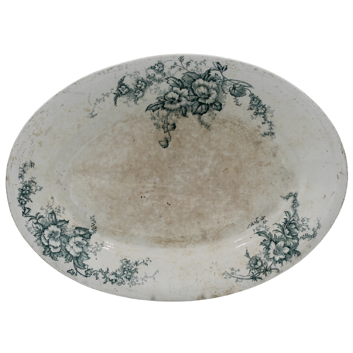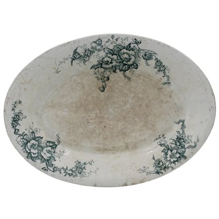 Piatto ovale Florio Terraglia decorata a motivi floreali in verde su fondo bianco (segni di usura). Marcato sul retro. Cm 36,5x26,5