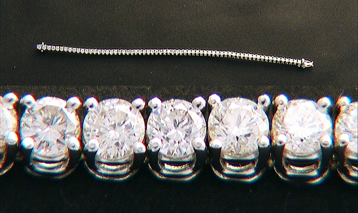 BRACCIALE TENNIS. In oro bianco 18 kt interamente percorso da diamanti taglio brillante per tot. cts. 4,60 ca. entro castoni a quattro griffes.