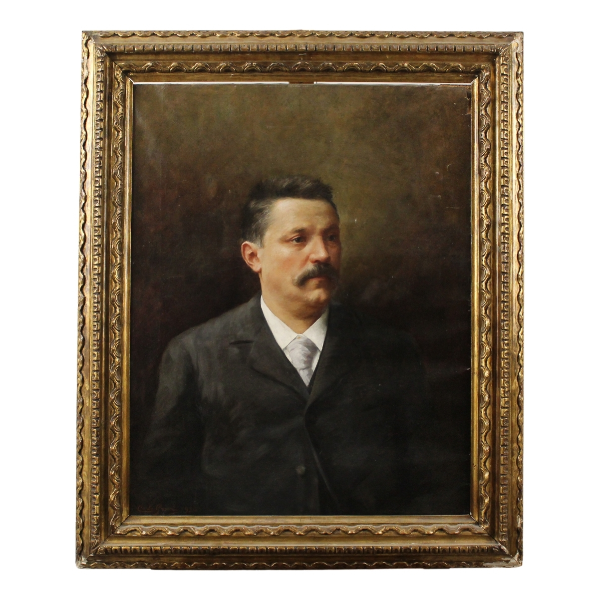 Carlo Grossi (1857/1931) "Ritratto" Olio su tela in cornice. Datato sul retro 1920. Cm 84x66