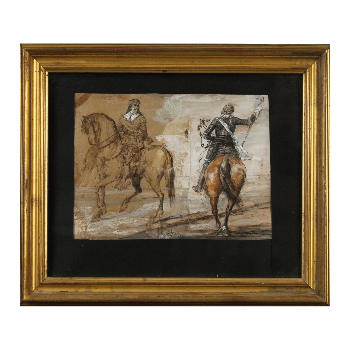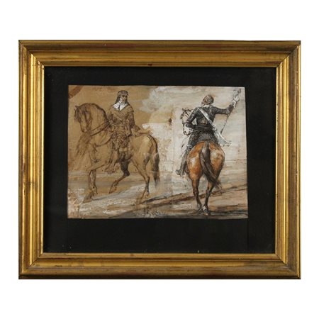 Scuola spagnola della fine del secolo XVII "Studio di cavalieri"