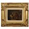 Scuola fiamminga del secolo XVIII "Interno di osteria" Dipinto ad olio su tavola in cornice in legno scolpito e dorato. Cm 20x27