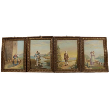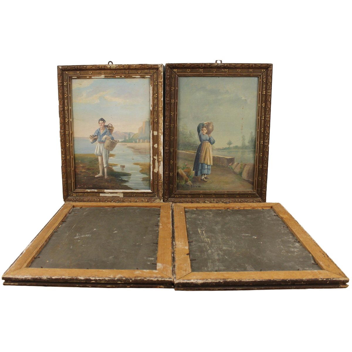"Popolani" Sei dipinti ad olio su zinco in cornici. Firmati G. Bova. Inizi secolo XX. Cm 36x25