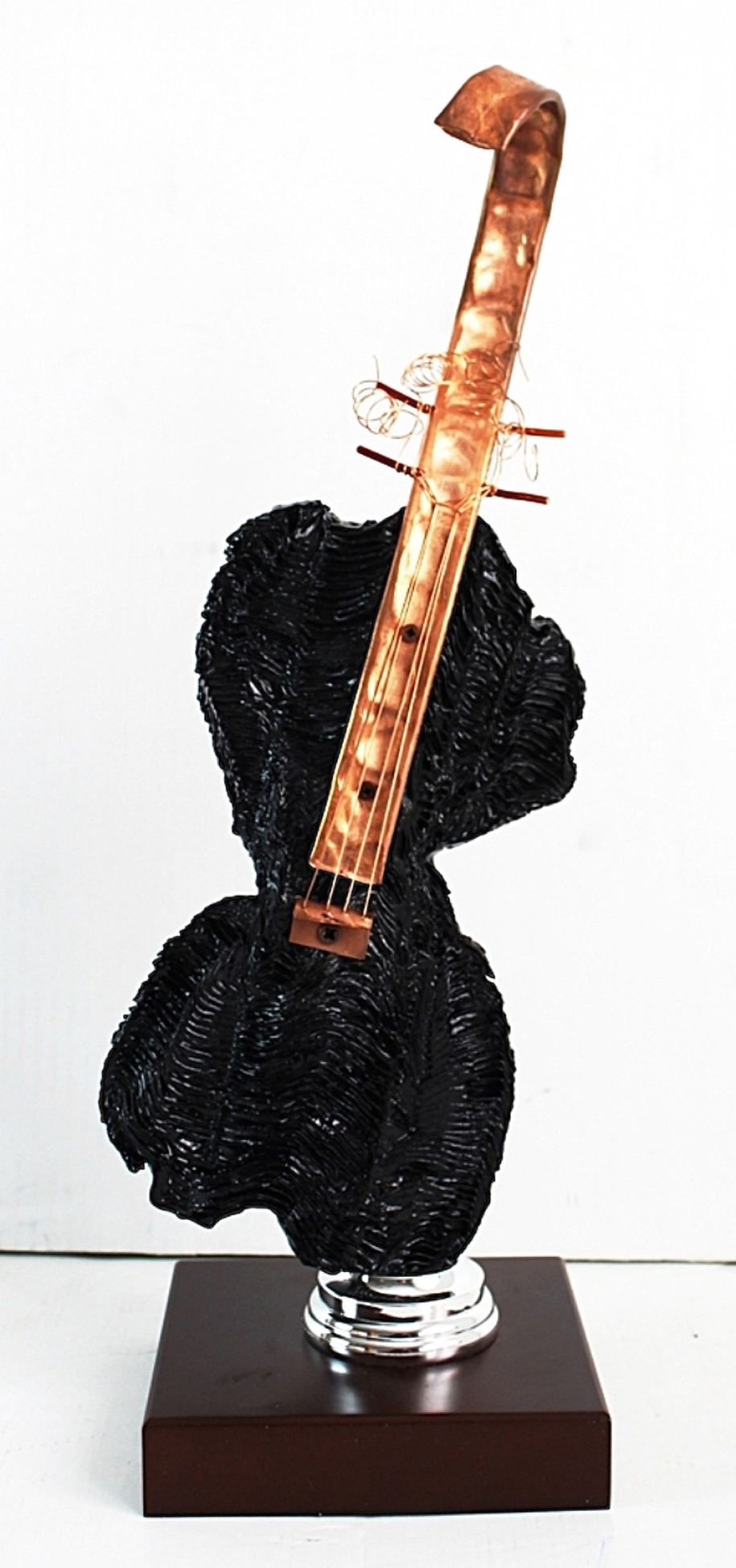 M'HORO' Italia XX sec. "Violino" Scultura in resina e manico in rame, cm 45x16x6. Esemplare T2/99. Autentica dell'Artista su foto.