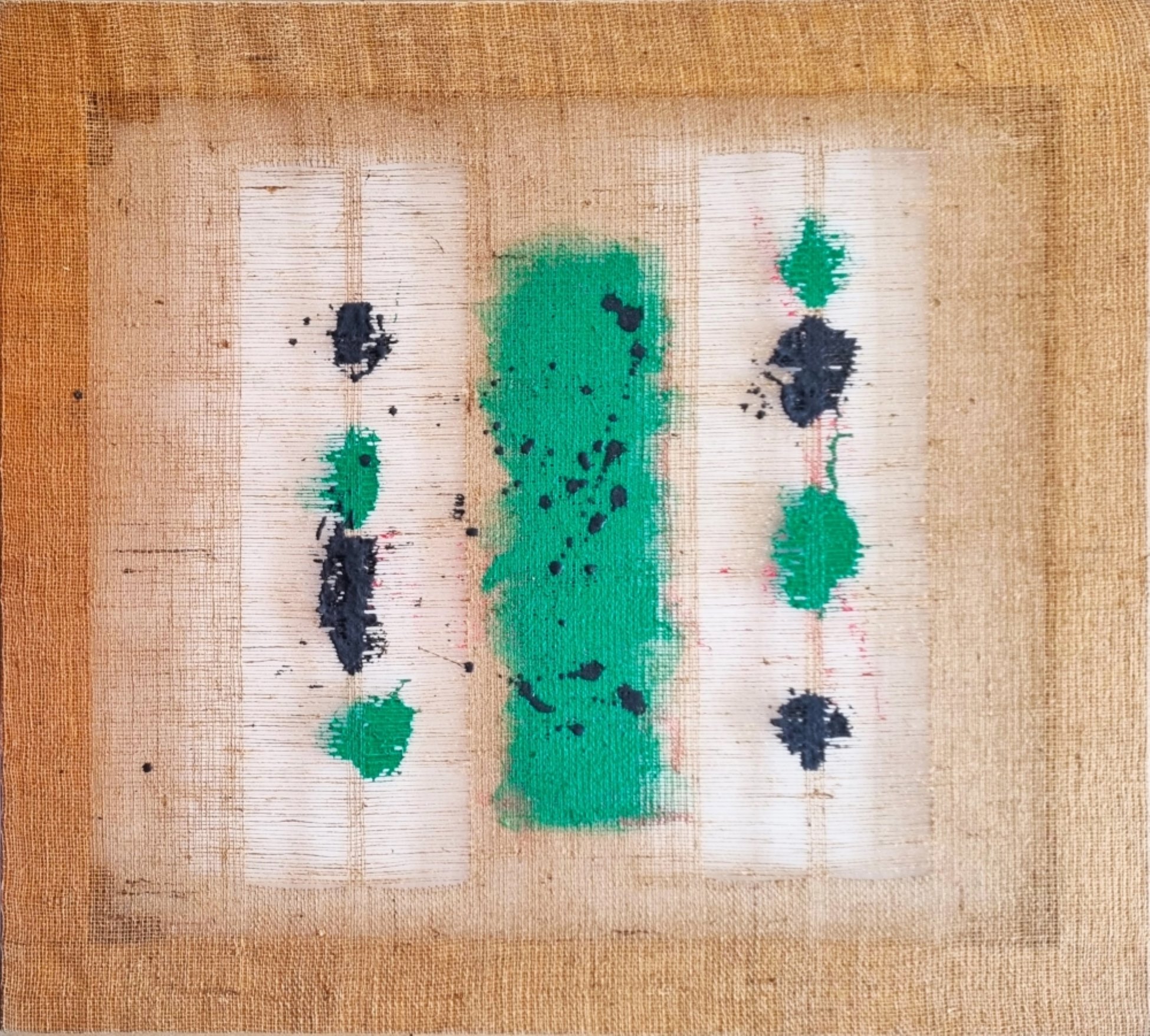 EMBLEMA SALVATORE Terzigno 1929 - 2006 "Senza titolo" Terra colorata su tela di juta cm 90x100 del 2004. Sul retro reca firma, data ed etichetta di provenienza. Autentica ed archiviazione su foto a cura del Maestro.