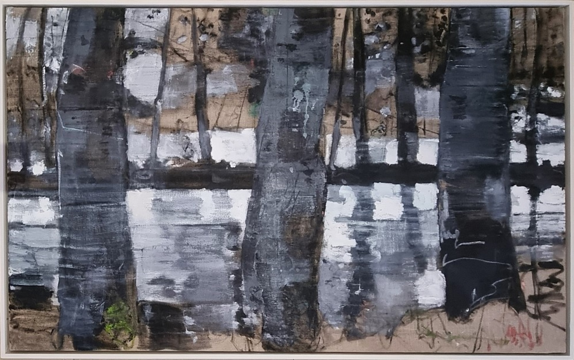 FRANGI GIOVANNI Milano 1959 "Giardini pubblici" Olio su tela cm 147x89. Firmato e datato al verso. Autentica su foto a cura del Maestro.